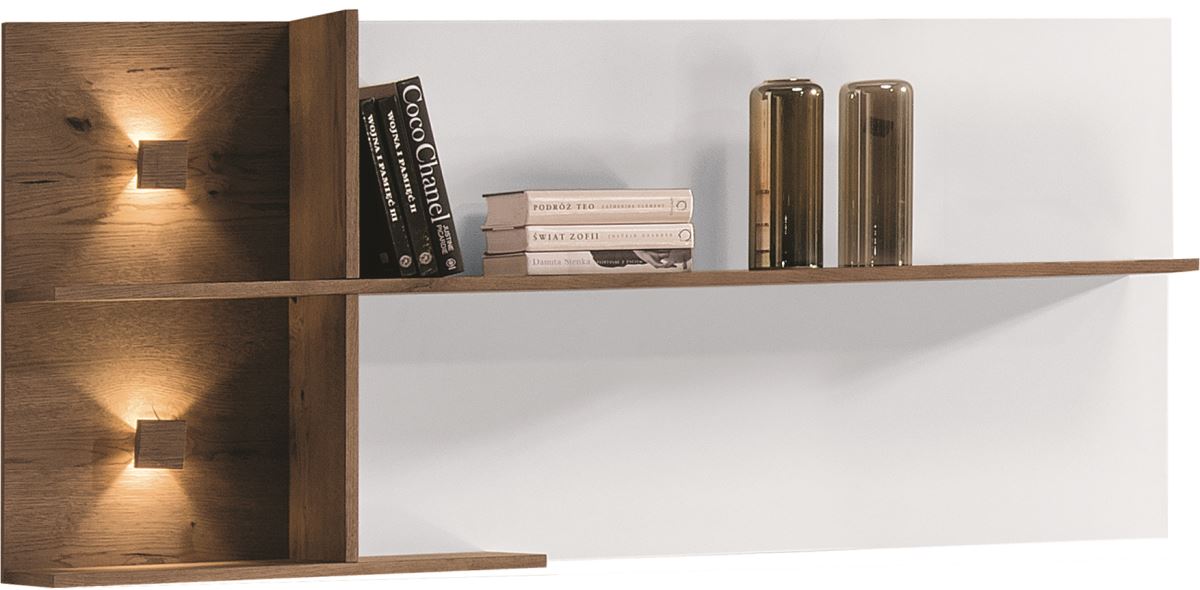 TARANKO Como CM L polica s osvetlením biely vysoký lesk / dub Como