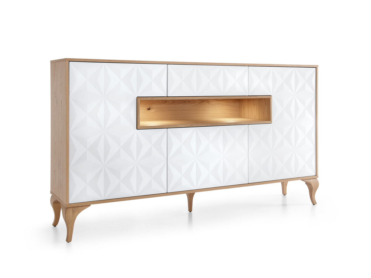 TARANKO Diament DI-K3 komoda s osvetlením biela / dub Diament