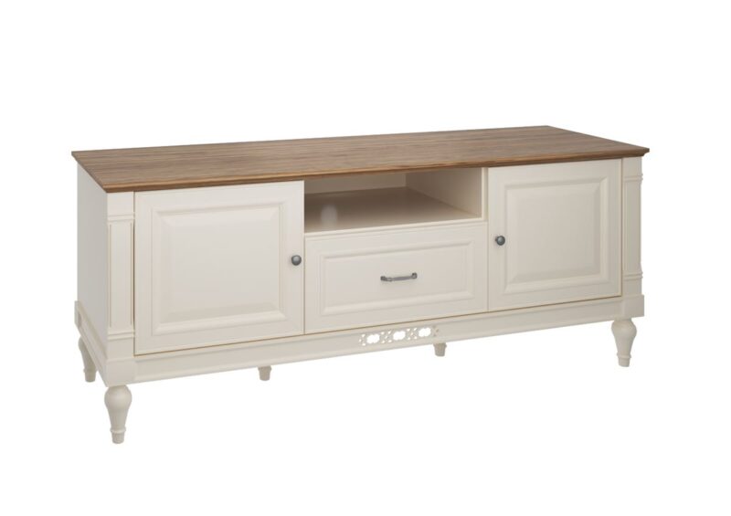 Nežnosť a pôvab ukrytý v TV stolíku FLORENCJA FL-RTV/D z kolekcie Florencja Vás okamžite očarí. Rozmery stolíka sú (ŠxHxV): 161,7×45,2×64,4 cm. Dekoruje ho farebné prevedenie vanilka v kombinácii s farbou dub Florencja. Prineste k sebe kúsok toskánskeho pôvabného dizajnu a romantickej atmosféry.…