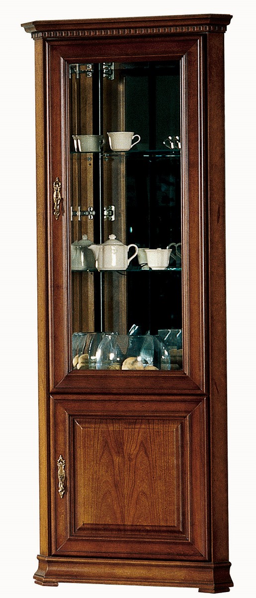 TARANKO Raweno R-W/N rustikálna rohová vitrína s osvetlením toffi