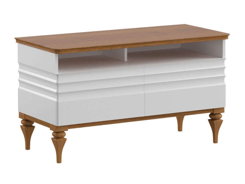 TV stolík TORINO TO-RTV/M sa bude nádherne vynímať v každom príbytku. Jeho rozmery sú (ŠxHxV): 103,6×45,6×58,7 cm. Zaručený úspech a obdiv mu prináša skvostné farebné prevedenie bielej vo vysokom lesku kombinovanej s farbou dub Torino. Elegancia s nádychom luxusu je zhmotnená v kolekcii Torino.…