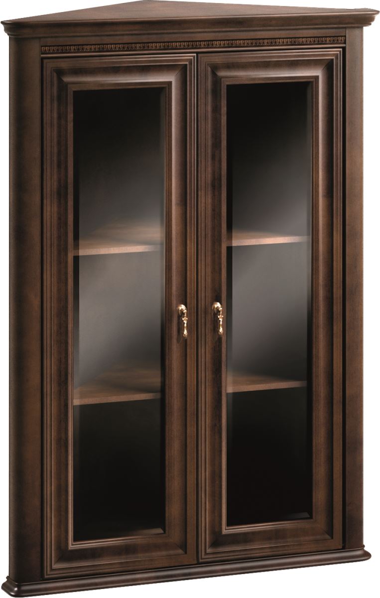 TARANKO Verona V-W/N rustikálna rohová vitrína na stenu s osvetlením hnedá