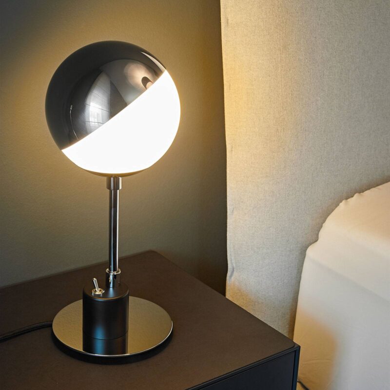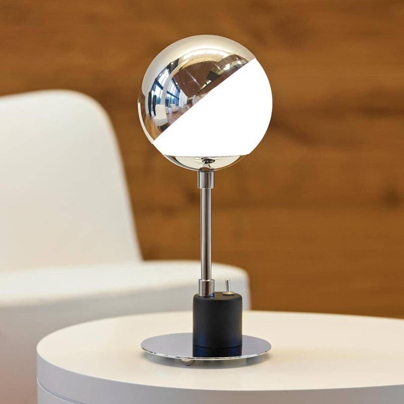 Okrúhle stolné svetlo so zrkadlovým efektom Nápaditá stolná lampa siaha až do švédskeho dizajnu z roku 1928. Dokonca aj po viac ako 85 rokoch pôsobí dizajn veľmi moderne. Guľaté tienidlo z bieleho opálového skla je do polovice zakryté šikmo nasadenou čiapočkou z pochrómovaného kovu, v ktorej sa odráža okolie. Pätke z čierneho hliníka, ktorá je nasmerovaná do jednej strany a spočíva na plochej doske, vytvára vyrovnaný protipól. Klasický dizajn osvetlenia, ktorý bol typický v čase vzniku tejto stolnej lampy, sa spája s purizmom, estetikou a kreativitou. Spoločnosť Tecnolumen overuje aj pri tomto modeli kvalitu špeciálnym číslovaním a svojou pečiatkou s menovkou. Spoločnosť Tecnolumen predstavuje moderné svietidlá navrhnuté súčasnými umelcami. Nemecký výrobca sa okrem súčasných návrhov opiera aj o nové vydania známych míľnikov umenia a zariadenia interiéru. Jedným z najvýznamnejších príkladov je stolná lampa, ktorú Wilhelm Wagenfeld vyrobil v roku 1924 vo Weimarskom Bauhause. Repertoár spoločnosti Tecnolumen ďalej zahŕňa diela z obdobia Art Déco a De Stijl.