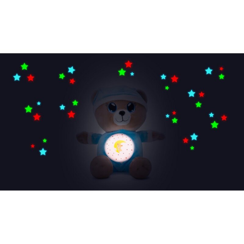 Medvedík Uspávačik je hebučký plyšák, ktorý hrá uspávanky a premieta farebné hviezdičky, takže sa s ním neboja zaspávať ani tí najmenší. Každé malé dieťa má svojho maznáčika na zaspávanie, ku ktorému sa rado túli a cíti pocit bezpečia. Medvedík Uspávačik je na to ako stvorený. Stačí stlačiť jeho kúzelné bruško a z izbičky je razom ríša snov. Medvedík premieta na strop farebnú hviezdnu oblohu a hrá 4 upokojujúce uspávanky. Je hebučký, mäkučký a láka k maznaniu. S Uspávačikom deti ľahko zaspávajú a majú pokojnú celú noc.Špecifikácia: