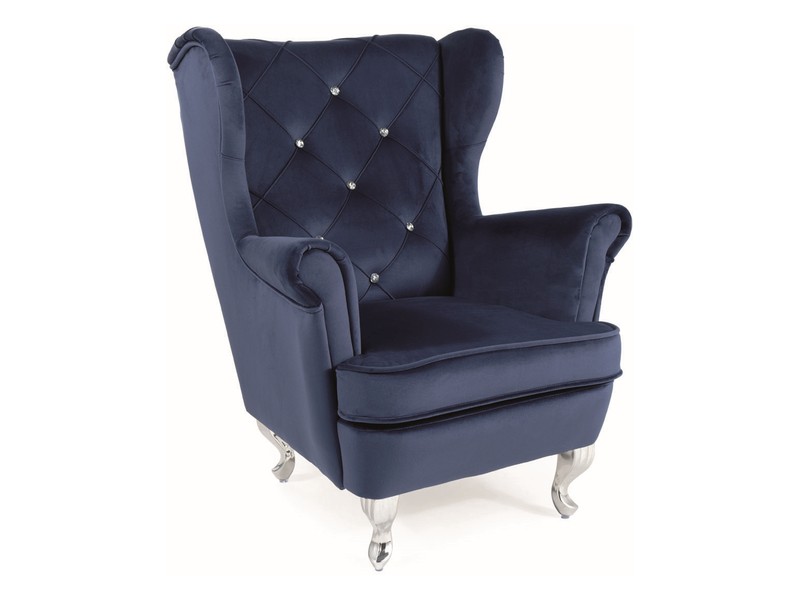 Elegantné kreslo TEDDY je v štýlovom prevedení, v škandinávskom štýle. Je celočalúnené kvalitnou zamatovou látkou Bluvel 86 v modrom prevedení. Nožičky sú vyrobené z kovu. Sú elegantne tvarované, v striebornom prevedení.Rozmer (š,v,h): 69 x 87 x 65 cm. Výška sedu: 36 cm. Hĺbka sedu 45 cm.