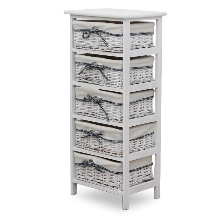Zútulnite si váš dom štýlovou komodou v kombinácii dreva a prútia. Komoda s 5 košíkmi poskytne dostatok úložného priestoru a bude sa dobre vynímať v ktorejkoľvek miestnosti.