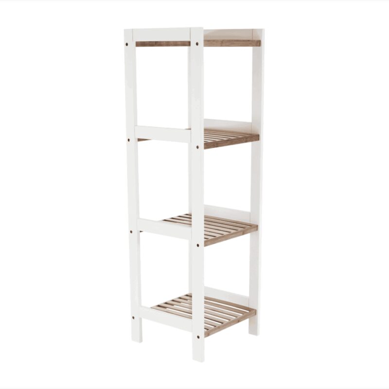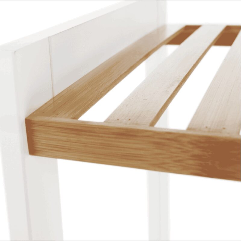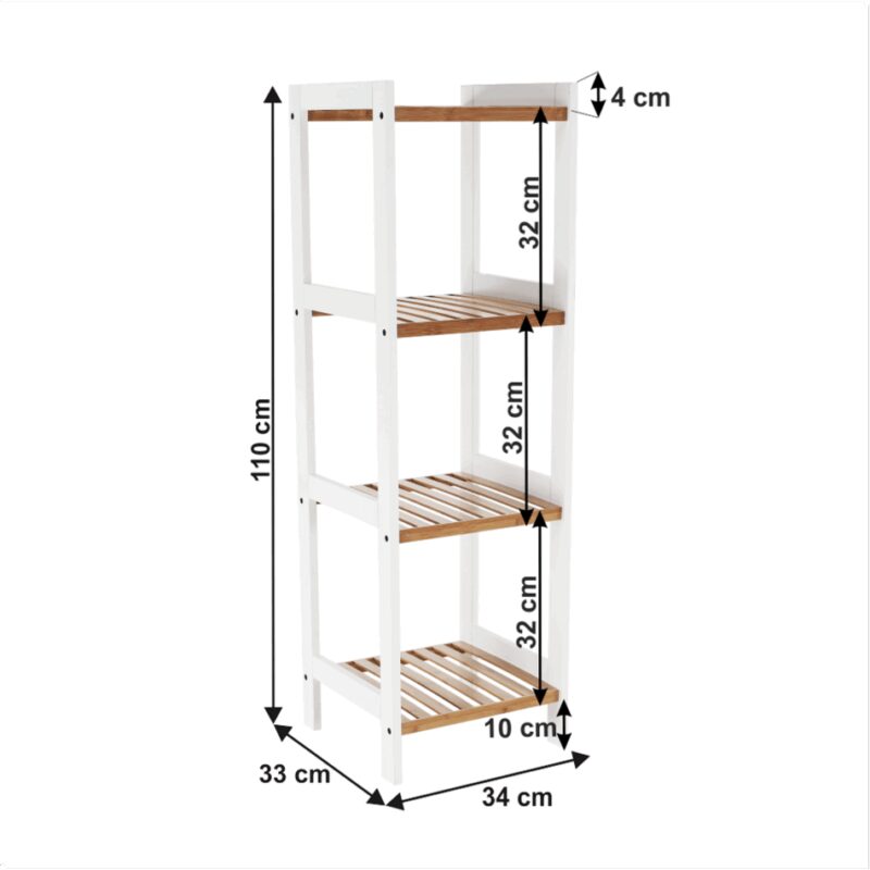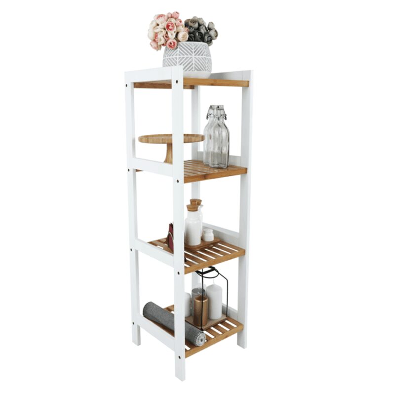 Moderný a súčasne praktický úložný priestor s všestranným využitím? Presne to všetko ponúka viacúčelový regál Erava 2. 4 poličky ponúknu dostatok miesta, neporiadok a rozhádzané veci už budú minulosťou. Vďaka materiálu MDF v bielom prevedení v kombinácii s prírodným lakovaným bambusom je regál moderným kúskom nábytku, ktorý kráča s dobou. Využijete ho v predsieni, kúpeľni, detskej izbe alebo obývacej izbe. Dodávané v demonte.