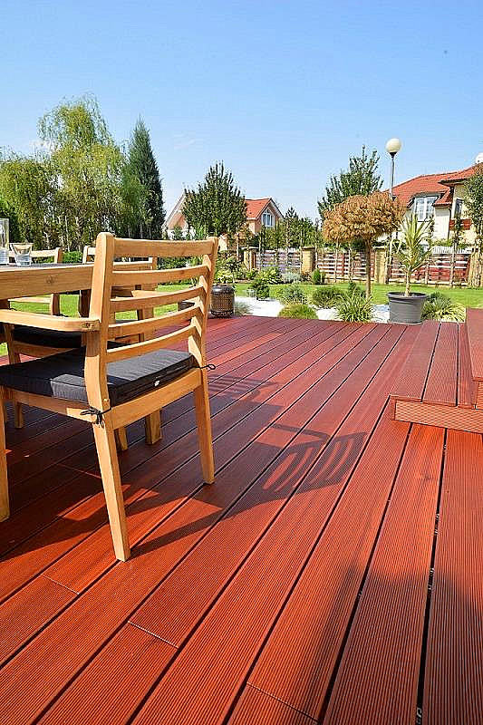 Najžiadanejší moderný variant z exotických drevín, pôvod dreviny z Južnej a Strednej Ameriky. Vysoko tvrdé, ťažké a odolné drevo. Ide o jemné, rovnomerne štruktúrované drevo s červenohnedým sfarbením. Farebné rozdiely medzi jednotlivými doskami sú prirodzenou vlastnosťou dreviny. Vďaka umelému sušeniu je drevo rozmerovo stabilnejšie a stálejšie. Dosky predsušené na vlhkosť 16 – 18%. Po pokládke terasy odporúčame terasové dosky ošetriť olejovým náterom. Šírka mm: 145, Hrúbka mm: 21, Druh dreviny: Massaranduba, Drážkovanie: Jemná ryha / Nie, Pohľadová strana pre pokládku: jemné ryhovanie, Skrutkovacie systém: áno