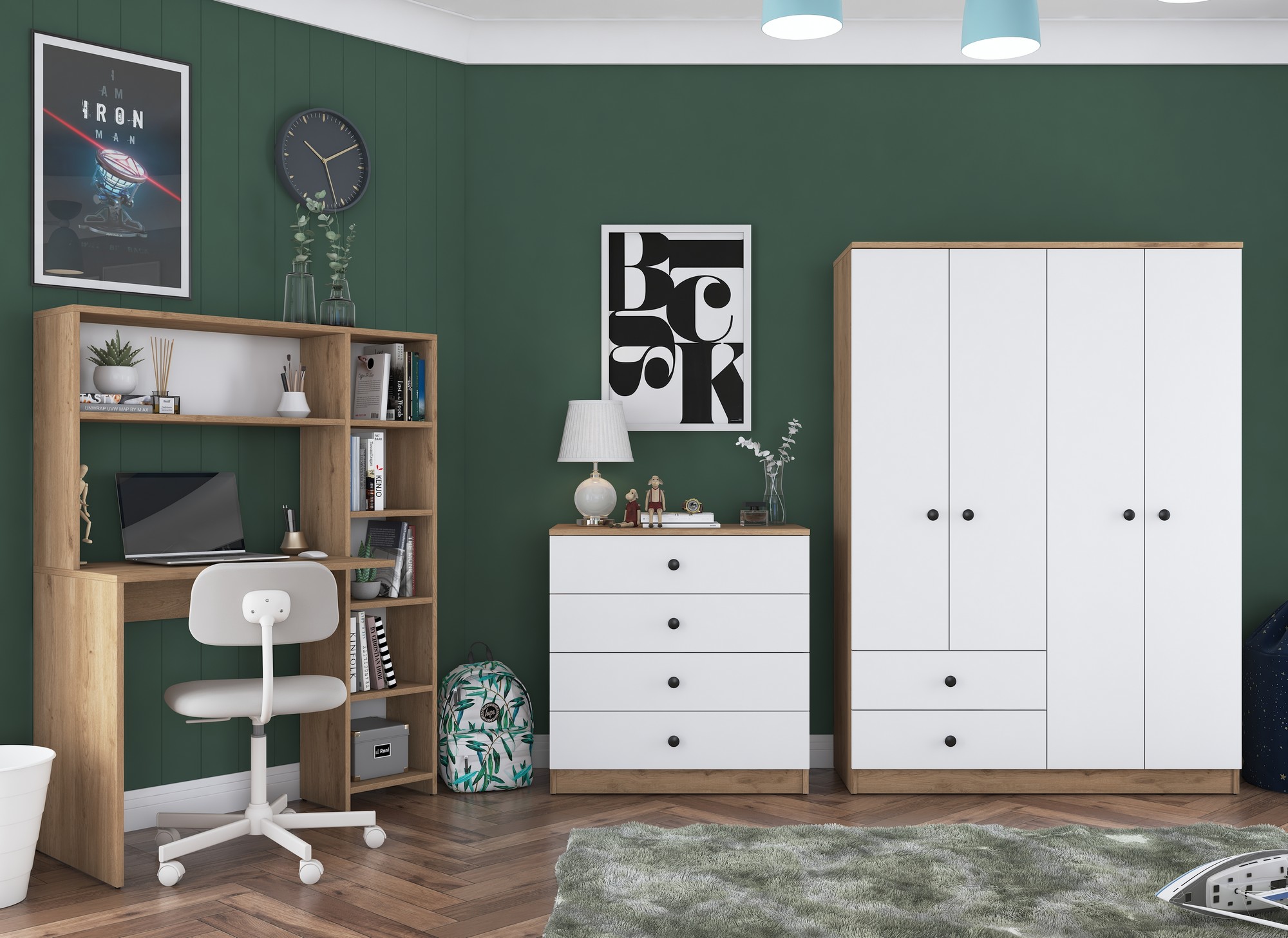 TERNO spálňová zostava, orech/biela