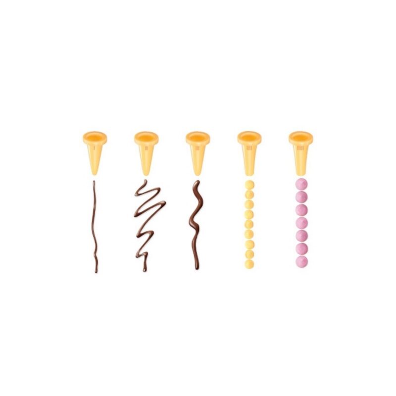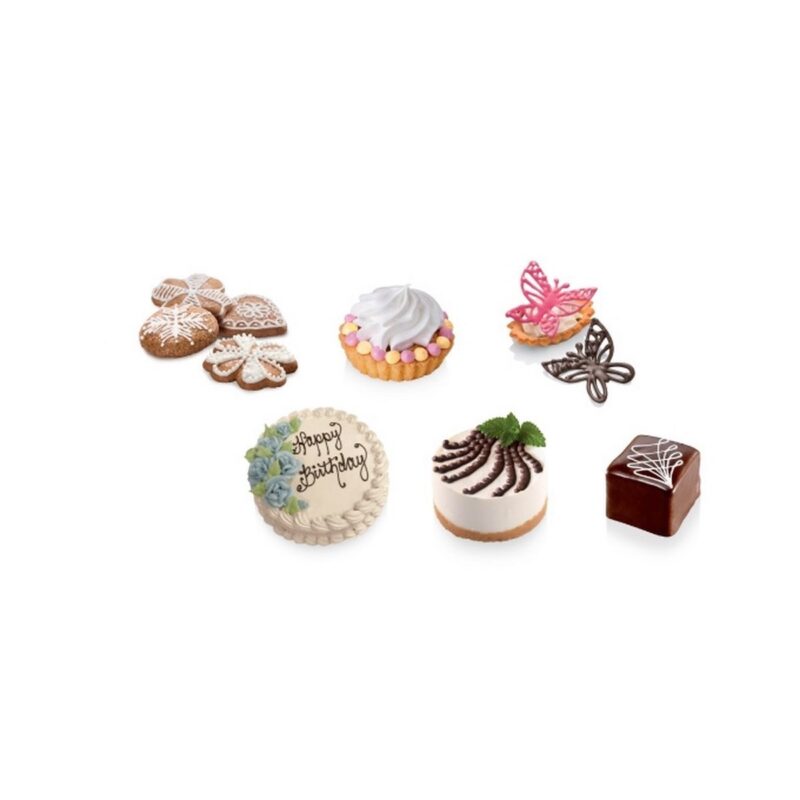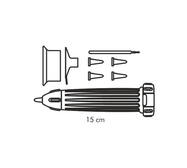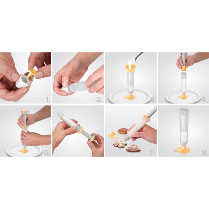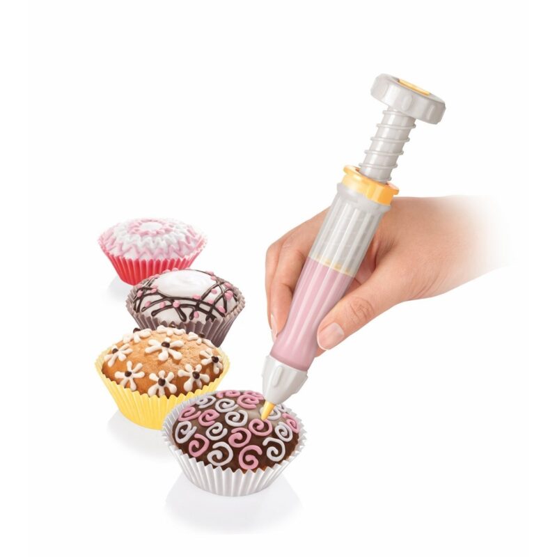 Vynikajúca pre dekorovanie pokrmov bielkovým, maslovým, tvarohovým a čokoládovým zdobiacim krémom, rozpustenou čokoládou aj šľahačkou a pod. Dodávané s 5 tryskami pre rôzne dekorovacie techniky vrátane veľmi jemných dekorov a písania. S praktickým stojanom pre ľahké plnenie a odkladanie ceruzky počas zdobenia a univerzálnym čistidlom. Vyrobené z prvotriedneho silikónu a odolného plastu, vhodné do umývačky riadu.
