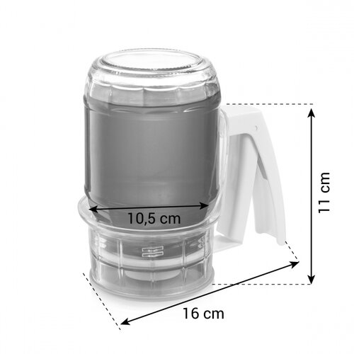 Dávkovač Delícia značky Tescoma je vynikajúci na pohodlné dávkovanie tekutého (nepastovaného) medu alebo sirupu a ich hygienické uchovanie.Dávkovač naskrutkujete priamo na pohár bežne používaný s viečkom s priemerom 82 mm alebo na domáci ovocný sirup v pohári s rovnakým priemerom viečka. A stlačením rukoväte potom med alebo sirup pohodlne dávkujete do nápojov alebo pokrmov priamo z pohára. Doba stlačenia rukoväte určuje veľkosť dávky, jedno krátke stlačenie zodpovedá zhruba jednej lyžičke medu.Po ukončení dávkovania zostáva med v pohári s nasadeným dávkovačom. Je tak hygienicky skladovaný na linke alebo v skrinke, stále pripravený na okamžité použitie s presným dávkovaním. Materiál: Odolný plast. Záruka 3 roky.