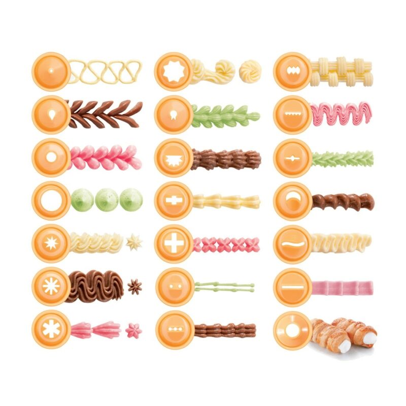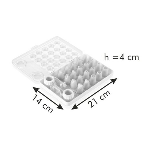 Vynikajúce pre dekorovanie a plnenie pokrmov. Súprava obsahuje 20 zdobiacich a 1 plniacu dýzu, čistiacu kefku a 2 adaptéry, trysky sú označené číslami pre ľahkú orientáciu. Vyrobené z odolného plastu, trysky v prípade potreby prečistite kefkou, vhodné do umývačky. 3 roky záruka. Vhodné pre plastové, plátené a elastické zdobiace sáčky DELÍCIA všetkých veľkostí.