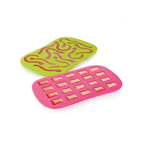 Vyrobte si domáce želatínové medvedíky a dážďovky ľahko a rýchlo, z vlastných overených surovín. Obe silikónové formy sú vynikajúce pre prípravu originálne tvarovaných domácich želatínových medvedíkov a dážďoviek bez použitia konzervantov, umelých farbív a prebytočných sladidiel. Hotové želatínové cukríky z pružných silikónových foriem vždy ľahko vyklopíte. Jednoduchá údržba. Perfektne skladné. Recepty sú súčasťou balenia. Záruka 3 roky.