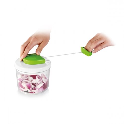 Tescoma Strunový sekáčik Handy ľahko a rýchlo naseká potraviny na požadovanú hrubosť. Je vynikajúci pre cibuľu, koreňovú zeleninu, paradajky, bylinky, jablká, hrušky, orechy, piškóty, prípravu ovocných a zeleninových šalátov, pesta a pod.