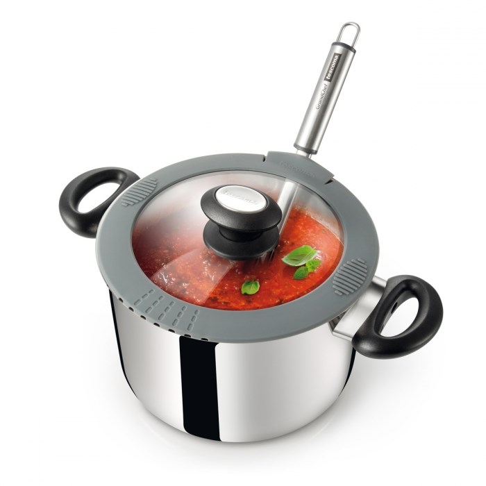 pokrievka má v pružnom okraji otvory pre pohodlné cedenie pokrmov
