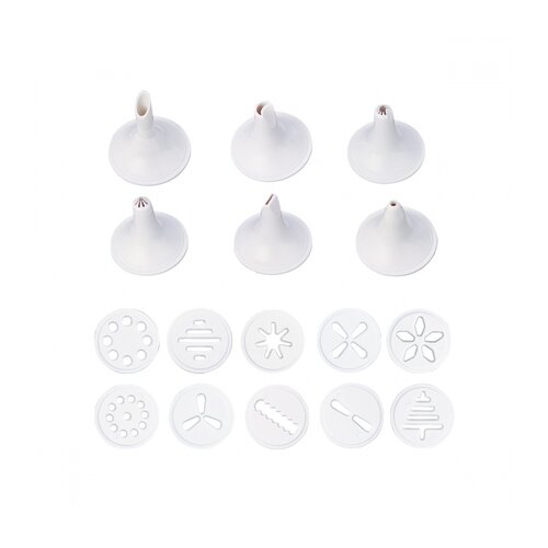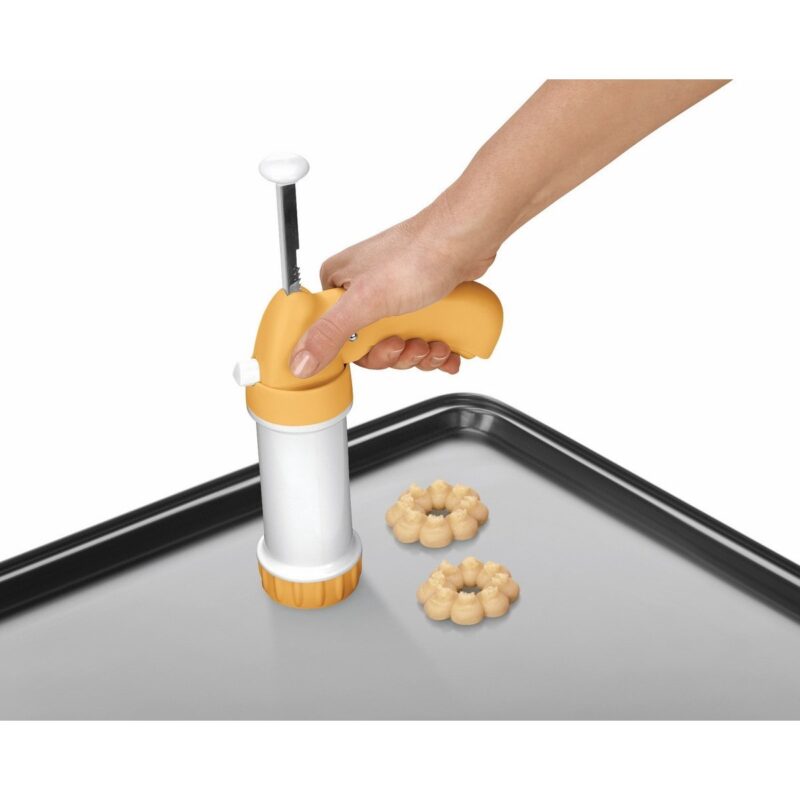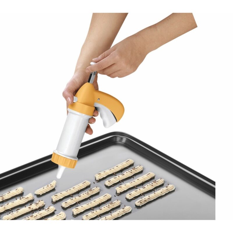 Lis na cesto a zdobička v jednom je vynikajúcim pomocníkom pre prípravu sušienok, cukroviniek, zdobenie tort, zákuskov, chlebíčkov, obložených mís, plnenie šišiek a pod. Obsahuje 10 lisovacích krúžkov a 6 dekoračných trysiek. Vyrobené z odolného plastu, vhodné do umývačky. Dodávame v štyroch farebných prevedeniach bez možnosti výberu. 3 roky záruka.