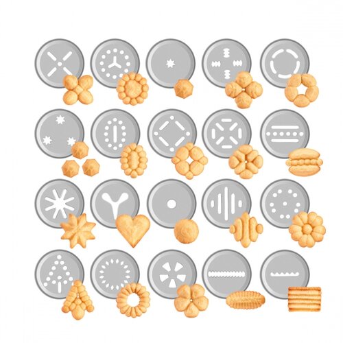Predstavujeme masívny kovový lis na cesto a zdobičku v jednom, vďaka ktorému už nemusíte tráviť hodiny pečením sladkých dobrôt. Pýtate sa, v čom je ten trik? Kovový lis totiž obsahuje 20 lisovacích krúžkov, s ktorými vykúzlite 20 tvarov sušienok, na ktorých si môžete pochutnávať kedykoľvek dostanete chuť. Výborné domáce keksy sú raz dva hotové a zamilujú si ich ako vaše deti, tak aj vy napríklad pri šálke obľúbenej kávy. S týmto šikovným pomocníkom totiž ľahko a rýchlo vykúzlite hneď 20 druhov cukroviniek naraz – stačí si pohrať s tvarmi, príchuťami, zdobením či náplňami. A ostatní budú len žasnúť, ako ste to všetko zvládli. A ak lisovací krúžok vymeníte za dekoračnú dýzu (4 dekoračné dýzy sú súčasťou balenia), razom lis premeníte na zdobičku, s ktorou svoje cukrárske umenie dovediete k dokonalosti.Predĺžená záruka 3 roky.