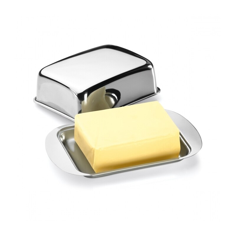 Máslenka GrandCHEF – praktický a elegantný spôsob uskladnenia aj servírovania masla. Maslo uložené v nerezovej máslenke s poklopom neosychá a vydrží dlhšie svieže. Podnos máslenky je opatrený praktickými úchytmi pre pohodlné prenášanie. Jednoduchá údržba. Záruka 3 roky.