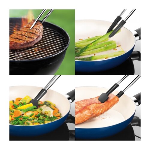 Pri varení a grilovaní by sa vám iste hodili tri páry rúk … alebo unikátna multifunkčná kuchárska pinzeta 3v1 Presto z kvalitnej nehrdzavejúcej ocele. Stačí len vymeniť zakončenie z kvalitného žiaruvzdorného nylonu a získate kuchynskú pinzetu, široké kliešte alebo varešku. Vďaka odnímateľnému zakončeniu je vhodná aj pre riad s nepriľnavým povrchom, ktorý nepoškodí.