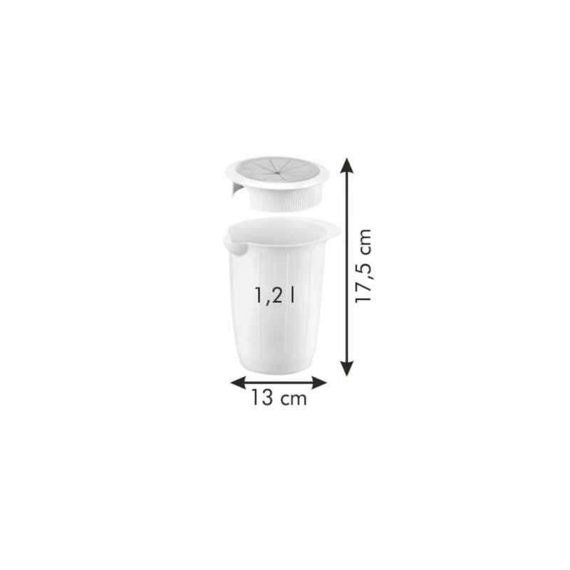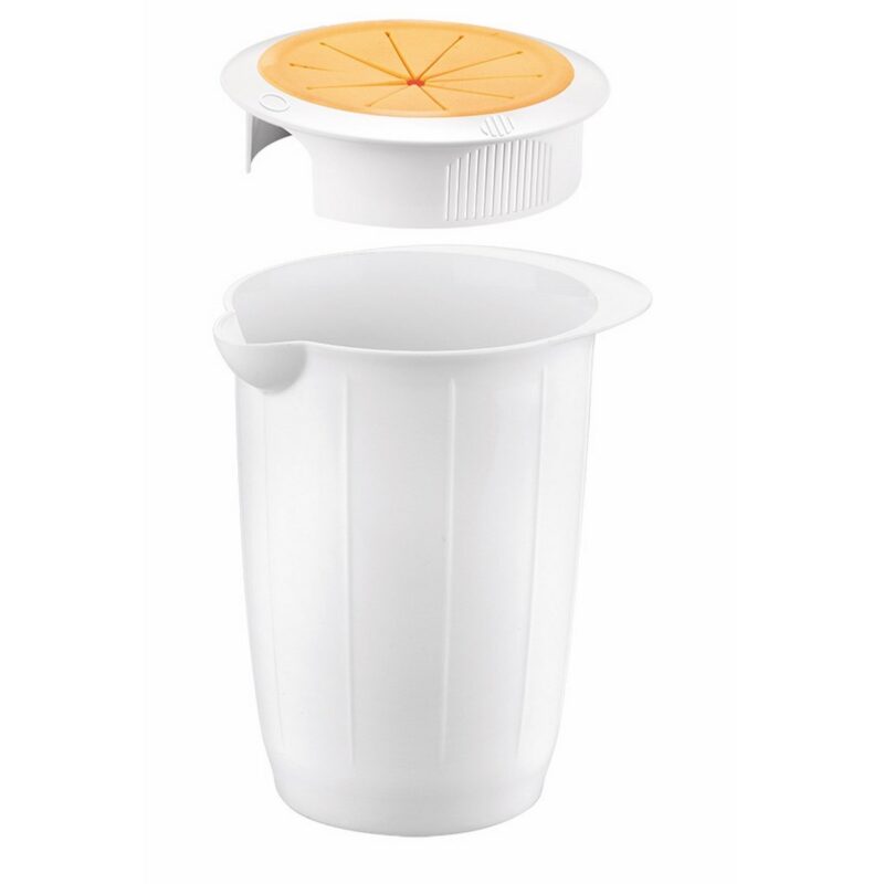 Tescoma Nádoba na mixovanie s ochranným viečkom DELÍCIA. Vynikajúca pre spracovanie pokrmov tyčovými mixérmi bez nežiaduceho striekania potravín z nádoby. Viečko možno pootočiť do 4 polôh – „uzavreté“ pri mixovaní, „jemné cedenie“, „hrubé cedenie“ a „otvorené“ pri vylievaní. Nádoba je opatrená lievikom, veľkou rukoväťou a protišmykovou úpravou pre komfortné použitie. Vyrobené z prvotriedneho odolného plastu, vhodné do chladničky a umývačky. 3 roky záruka. Dodávané v dvoch prevedeniach (biela a priehľadná nádoba) bez možnosti výberu.