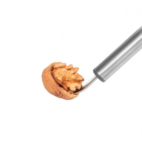 Je vynikajúci pre ľahké lúskanie orechov s delenou škrupinou, napr. vlašských orechov a pistácií. Vďaka špeciálnej zahnutej čepeli luskáčik GrandCHEF škrupiny orechov nedrví, ale šetrne ich rozpolí a nepoškodí pritom ich plody. Zahnutou čepeľou plody orechov z rozpolenej škrupiny ľahko vylúpnete bez toho, aby ste ich poškodili. Celistvé plody zbavené škrupiny môžete použiť na dekorovanie tort a cukroviniek. Materiál: prvotriedna nehrdzavejúca oceľ a odolný plast.