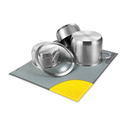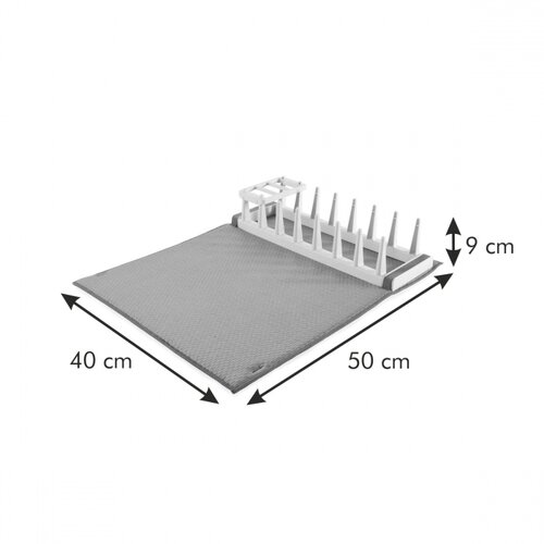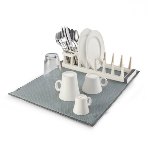 Odkvapkávač CLEAN KIT obsahuje účinnú absorpčnú vrstvu, ktorá zachytí vodu z riadu a mäkký textilný povrch odkvapávača ochráni odložený riad pred poškodením. Odkvapkávač je opatrený unikátnym stojanom s prepážkami pre odkladanie a sušenie tanierov alebo pokrievok a odnímateľným zásobníkom pre sušenie príborov a náradia.Stojan je sklápací, odkvapávač môžete po použití aj s nasadeným stojanom ľahko zrolovať, je perfektne skladný. Čistenie: stojan a zásobník na príbory je možné umývať v umývačke riadu.Predĺžená záruka 3 roky.