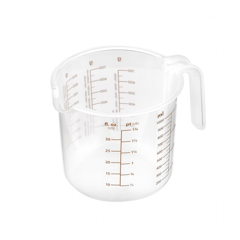 Odmerka s nálevkou Delícia vynikajúca na odmeriavanie sypkých hmôt a tekutín. Umývajte bežnými čistiacimi prostriedkami, nepoužívajte čistiace prostriedky na báze piesku alebo agresívne chemikálie. Nepoužívajte v mikrovlnnej rúre. Záruka 3 roky.