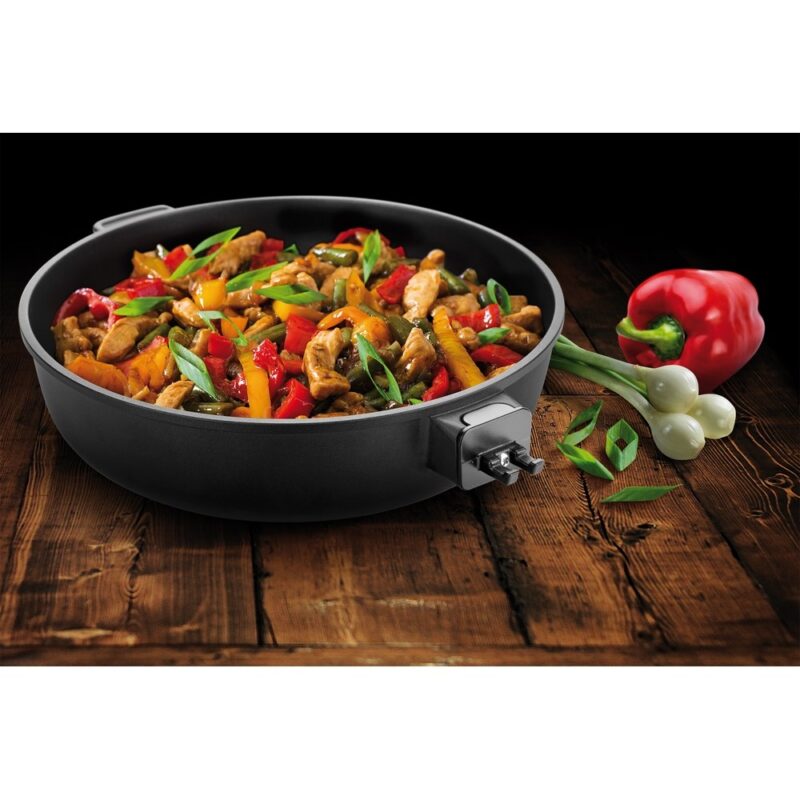 Panvica a pekáč v jednom? A čo takto dobrá masívna panvica a kvalitný pekáč v jednom, ktoré vydržia, sú úsporné na uloženie a vedia sa veľmi šikovne premeniť jedno v druhé.Revolučná panvica SmartCLICK s ľahko odnímateľnou rukoväťou, v ktorej môžete bez obmedzení variť na sporáku rovnako ako v nej naplno piecť, grilovať a zapekať v rúre.Funguje to naozaj ľahko – s nasadenou rukoväťou je SmartCLICK špičkovou plnohodnotnou panvicou, s odobranou rukoväťou úplne nahradí zapekaciu misu alebo pekáč. Revolučný systém SmartCLICK, kedy jednoduchým stlačením prsta jednej ruky oddelíte rukoväť od panvice, je originálnym riešením Tescomy, ktoré žiaden iný výrobok tohto typu nemá.Vlastnosti: