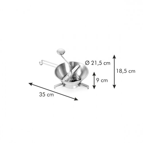 Pasírovač GrandCHEF značky Tescoma – skvelý pomocník pre pasírovanie surovej aj varenej zeleniny a ovocia.Je vynikajúci pre prípravu paradajkových, zemiakových, zeleninových alebo ovocných pretlakov a pyré a pod. V pasírovači GrandCHEF pripravíte pretlak zo surových alebo varených paradajok aj zo surového ovocia s mäkkou dužinou, napr. banánov, jahôd a pod. Ostatnú zeleninu a ovocie, napr. koreňová zeleninu , strukoviny, jablká a pod. pred pasírovaním povarte, aby zmäkli. Vďaka unikátnej plastovej zhrňovacej lopatke môžete ľahko a plynule pasírovat aj väčšie množstvo potravín.Vlastnosti: