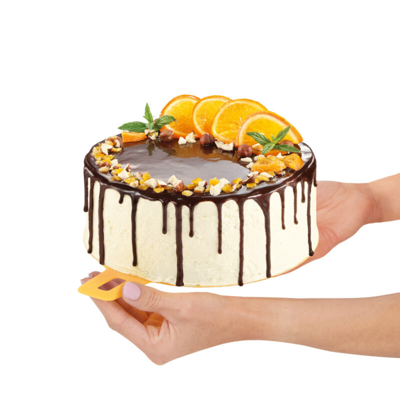Podložky na prípravu tort DELÍCIA pre ľahkú manipuláciu s tortami. Výrazne uľahčujú prácu pri výrobe a podávaní tort, po upečení korpusov ich oceníte vo všetkých fázach prípravy tort.Uľahčia vám zdobenie tort tekutou čokoládou, pozdĺžne krájanie tortových korpusov, nanášanie krémových a ovocných náplní, roztieranie tekutých a krémových polev, sú šikovné a účelné pri dekorovaní tort i ich prenášaní.Podložky sú pre ľahkú manipuláciu opatrené úchytmi. Dodávané v 3 veľkostiach pre torty všetkých bežných veľkostí s priemermi korpusov od 20 do 30 cm. Podložky sú rovnako ideálne ako ochrana povrchov pri porciovaní hotových tort.