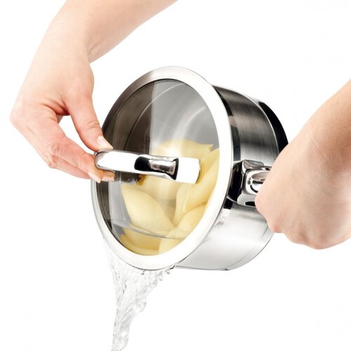 Luxusný kuchynský riad so sklonerezovými pokrievkami, masívnymi nehrdzavejúcimi úchytkami, extra silným sendvičovým dnom a odmernou stupnicou. Rajnica s nálevkou (zobáčikom) je opatrená cediacou pokrievkou s malými i veľkými otvormi pre komfortné cedenie.Riad PRESIDENT je vyrobený z prvotriednej nehrdzavejúcej ocele 18/10, je teda vysoko odolný voči korózii aj pri pravidelnom i dlhodobom varení a umývaní v umývačke riadu. Pre pokrievku bolo použité kvalitné, mimoriadne odolné sklo.Všetky nádoby majú extra silné sendvičové dno, vďaka ktorému je teplo zo sporáka odovzdávané dnu nádoby plynulo, bez výkyvov a rovnomerne po celej ploche dna. Príprava jedla je tak ľahšia, bez nepríjemného pripaľovania a umožňuje významnú úsporu energie – prebieha i pri nízkom výkone sporáka a jedlo si dlho uchováva svoju teplotu.Masívne vodotesné úchyty boli konštrukčne vyriešené tak, aby po vytiahnutí z umývačky „z uší“ riadu nevytekala voda a mohli ste ho ihneď uložiť do kuchynskej linky.Pretože sada spĺňa bezo zvyšku nároky na intenzívne a dlhodobé používanie, je na ňu mimoriadna záruka 5 rokov.Sada obsahuje: