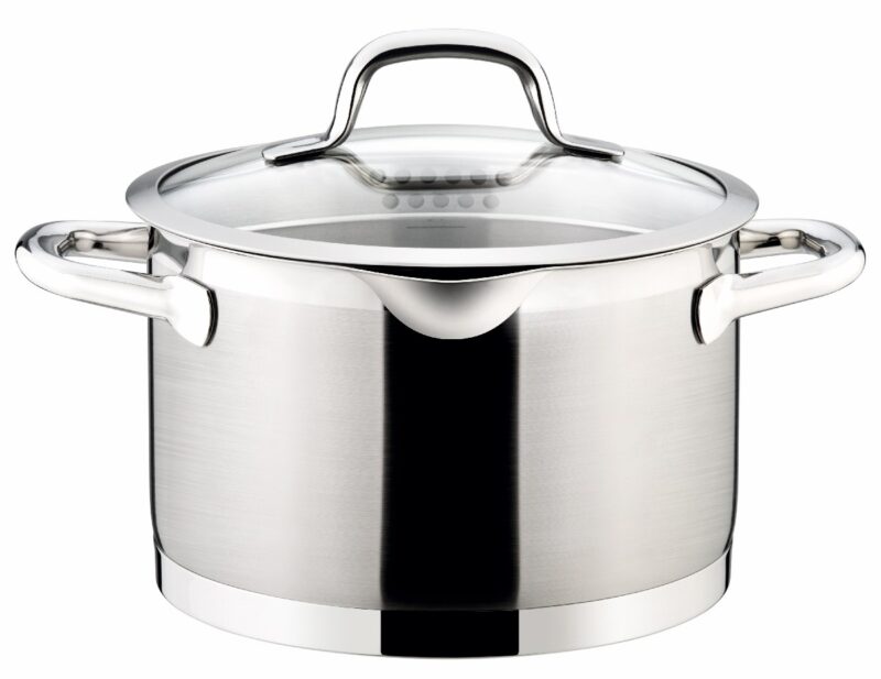 Riady i pokrievky kuchynského riadu PRESIDENT sú opatrené masívnymi dutými nerezovými úchytkami, ktoré sú na rozdiel od klasických dutých úchytov úplne uzavreté a dokonale vodotesné.Riad PRESIDENT je preto vhodný do umývačky, po umytí z úchytov hrncov, kastrólov, kastrólikov ani pokrievok nevyteká žiadna voda.Hrniec je opatrený sklonerezovou pokrievkou s lievikom a špeciálnou cediacou pokrievkou s malými a veľkými otvormi pre komfortné cedenie varených pokrmov. Hrniec má na vnútornej strane odmeriavaciu stupnicu.