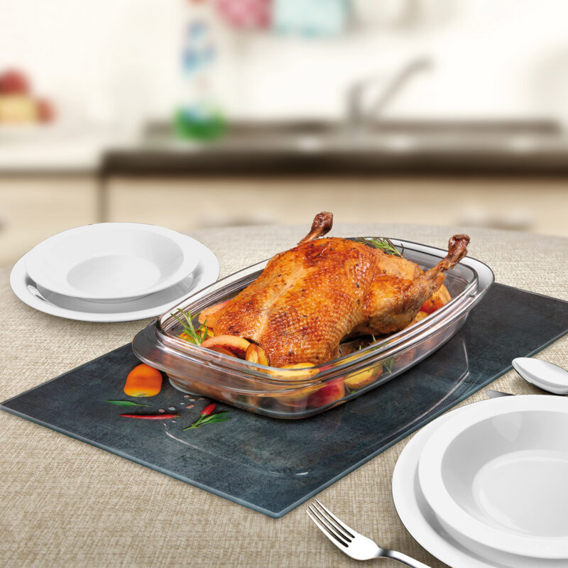 Rozšíri pracovný priestor v kuchyni ako prídavná odkladacia plocha na sporák a ochráni priestor za varnou doskou ako zvislá krycia plocha steny.S výškovo nastaviteľnými nožičkami, prísavkami a opierkami pre stabilné a bezpečné použitie so sklokeramickými, indukčnými, elektrickými a plynovými varnými doskami.Vyrobené z tvrdeného skla a odolného plastu. Používajte len na vypnutých varných doskách. 3 roky záruka.