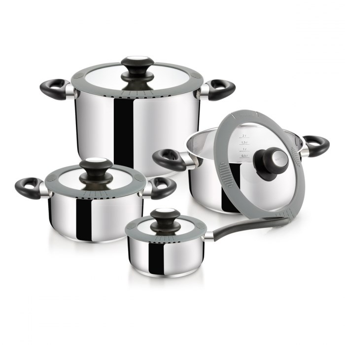 Nerezový kuchynský riad s unikátnymi pokrievkami, s ktorými je varenie jedna radosť. Pokrievky sú opatrené pružným silikónovým okrajom, do ktorého je možné odkladať naberačku, penovačku, lyžicu, varešku a pod.Pri varení v riadu SmartCOVER máte hneď o niekoľko starostí menej:nepotrebujete misku ani stojanček pre odkladanie náradiapoužívané náradie máte vždy po ruke, odložené priamo v riadenemusíte zbytočne čistiť kuchynskú linku znečistenú odloženým náradímpokrmy, napr. polievky alebo omáčky pri podávaní nechladnúVýhody:
