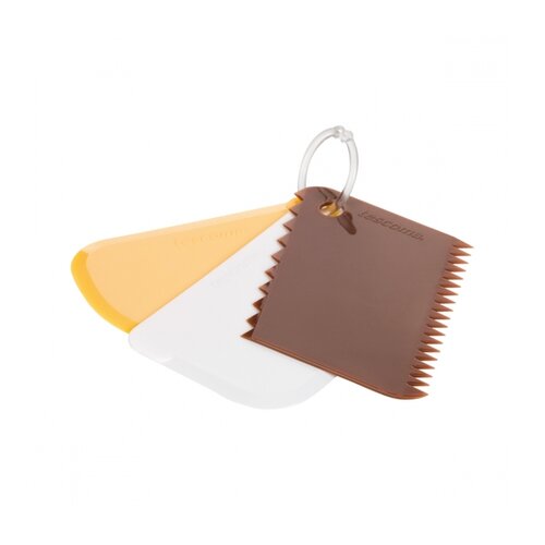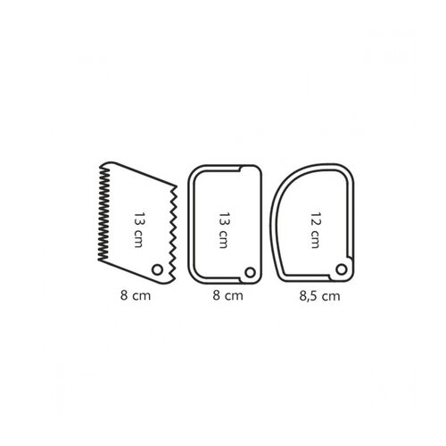 Praktická sada stierok pre prípravu sladkých i slaných dobrôt. Pružná stierka je vynikajúca pre rozotieranie v okrúhlych formách a misách, tvrdá stierka pre rovnomerné rozotieranie plôch a zubatá stierka pre dekorovanie poliev, nátierok a pod. Vyrobené z prvotriedneho odolného plastu, vybavené krúžkom pre zavesenie. Jednoduchá údržba. Záruka 3 roky.1x stierka 13 x 8 cm, zvlnený okraj1x stierka 13 x 8 cm, obdĺžnikový tvar1x stierka 12 x 8,5 cm, zaoblený okraj
