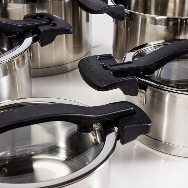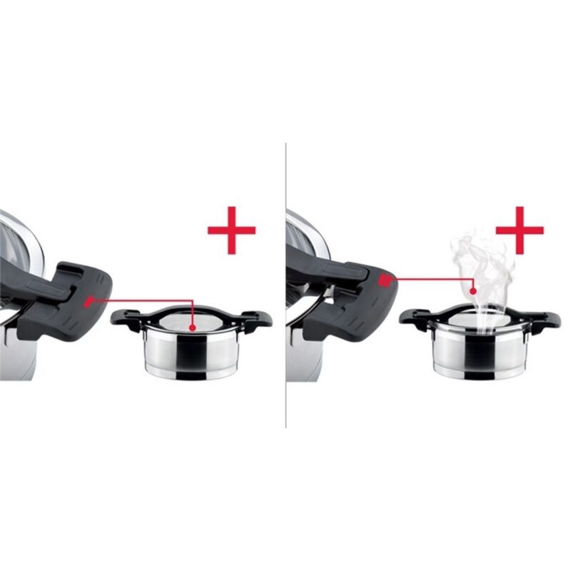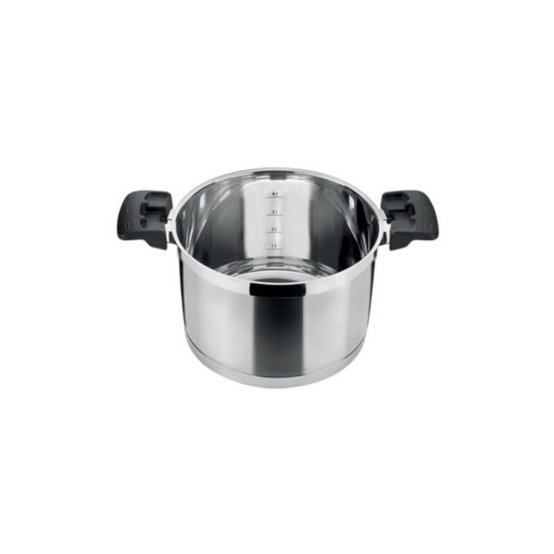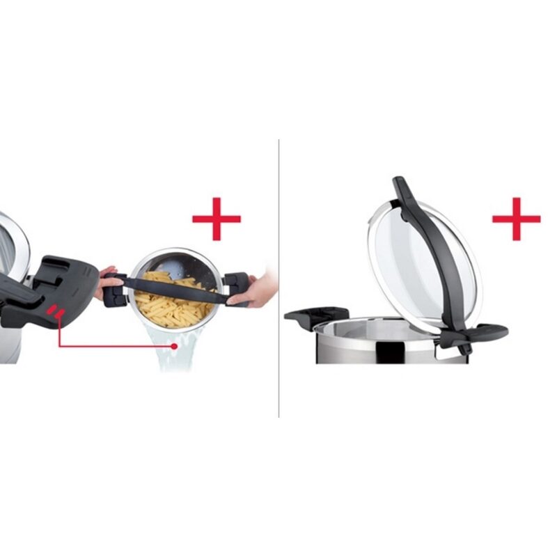 VEĽKÝ OTVOR pre cedenie zemiakov, cestovín a pre intenzívne varenie bez prekypenia. Pokrievku možno odkladať do úchytov, para steká späť do riadu. Riad má silné sendvičové dno, stupnicu pre ľahké odmeranie a úchytky z odolného plastu. Vyrobené z prvotriednej nehrdzavejúcej ocele 18/10, 5 rokov záruka.Sada obsahuje: