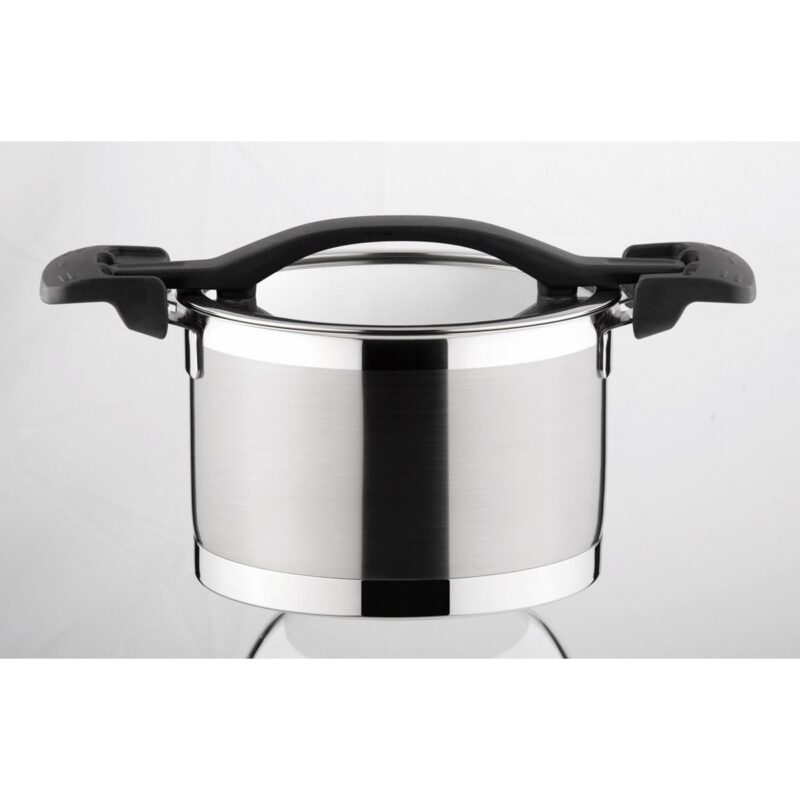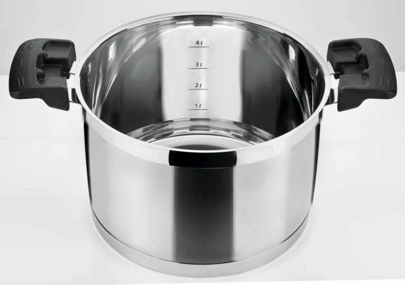 Tescoma ULTIMA hrniec s pokrievkou 4 l. Luxusný kuchynský riad Tesoma Ultima s revolučným systémom regulácie pary a cedenia. Unikátna sklonerezová pokrievka s 3 pracovnými polohami:, 1. ŽIADNÝ OTVOR NA PARU pre rýchle dosiahnutie varu a ohrievania pokrmov s úsporou energie.2. MALÝ OTVOR NA PARU pre komfortné varenie bez prekypenia a cedenia nadrobno krájanej zeleniny.3. VELKÝ OTVOR NA CEDENIE zemiakov, cestovín a pre intenzívne varenie bez prekypenia. Pokrievku možno odkladať do úchytov, para steká späť do riadu. Vybavená extra silným sendvičovým dnom, stupnicou pre ľahké odmeriavanie a úchyty z odolného plastu. Vyrobená z prvotriednej nehrdzavejúcej ocele 18/10. 5 rokov záruka.