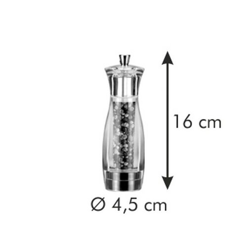 Transparentné mlynčeky VIRGO na korenie, soľ a chilli sú rozlíšené farbou mlecieho mechanizmu: čierna pre čierne korenie, biela pre soľ a červená pre chilli papričky. Mlynčeky na korenie a soľ VIRGO sú opatrené prvotriednym keramickým mlecím mechanizmom s nastaviteľnou hrubosťou mletia.POUŽITIE A ÚDRŽBAMlynčeky čistite vlhkou utierkou a osušte, neumývajte v umývačke.