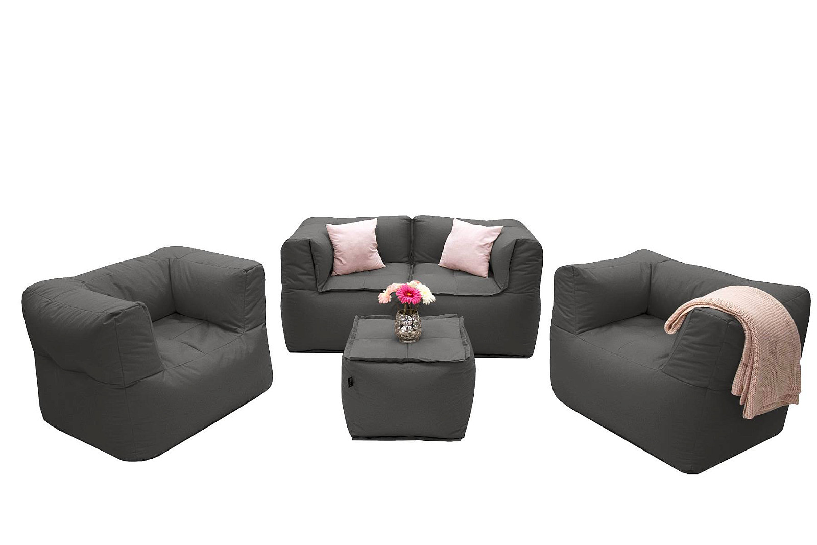 Sestava obsahuje: 2x Záhradné textilné kreslo MODULTEX (šedo-hnedá), 2x Záhradný textilný rohový diel MODULTEX (šedo-hnedá), 1x Záhradný textilný stolík/taburet MODULTEX (šedo-hnedá)