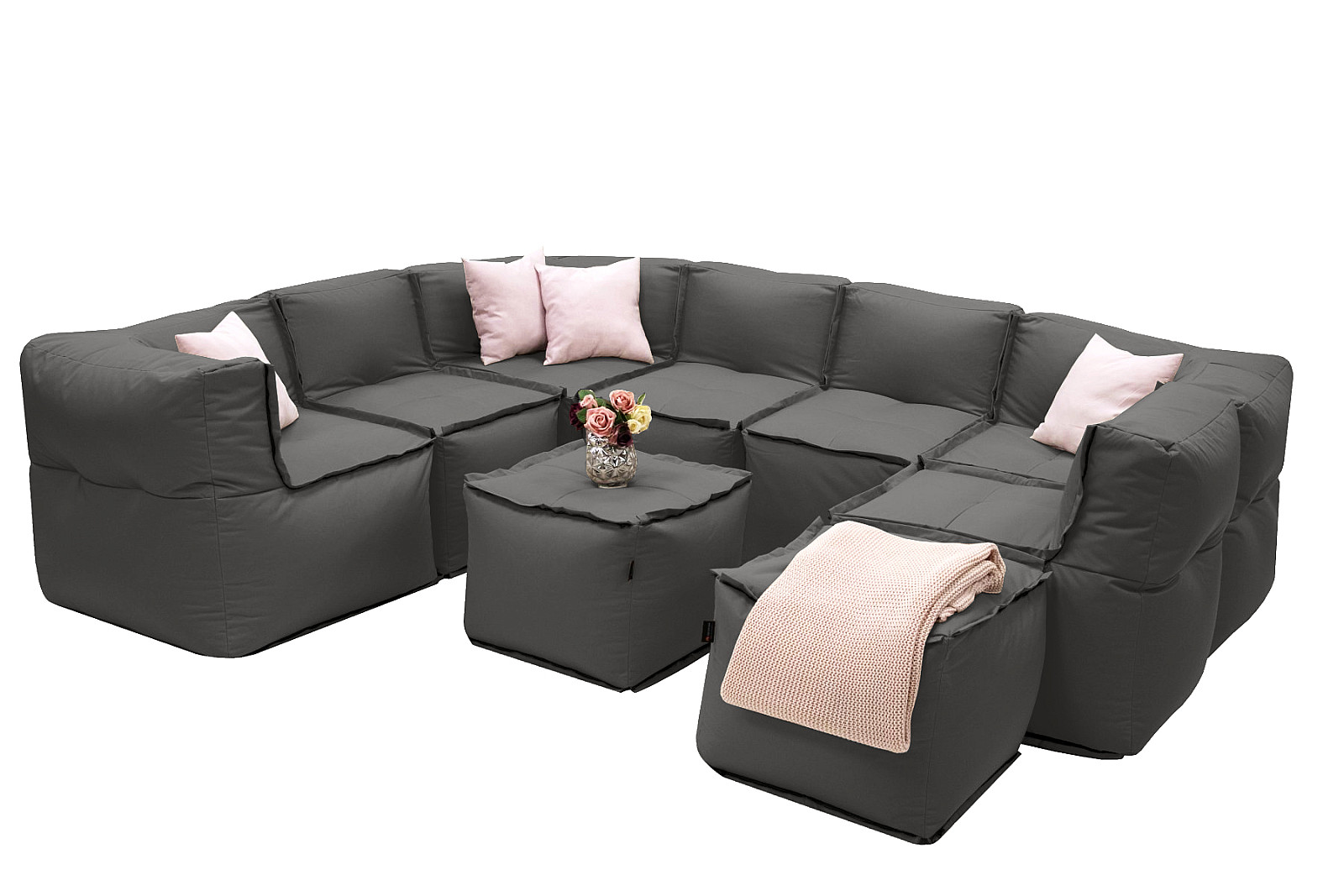 Sestava obsahuje: 3x Záhradný textilný rohový diel MODULTEX (šedo-hnedá), 4x Záhradný textilný stredový diel MODULTEX (šedo-hnedá), 2x Záhradný textilný stolík/taburet MODULTEX (šedo-hnedá)