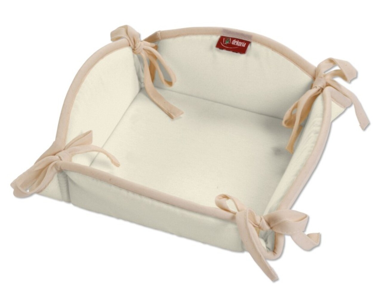 Štvorcový košík s mašľami zakončený lemovaním, farebne zladený s vybranou látkou, je tým pravým doplnkom pre krásne zladené stolovanie.