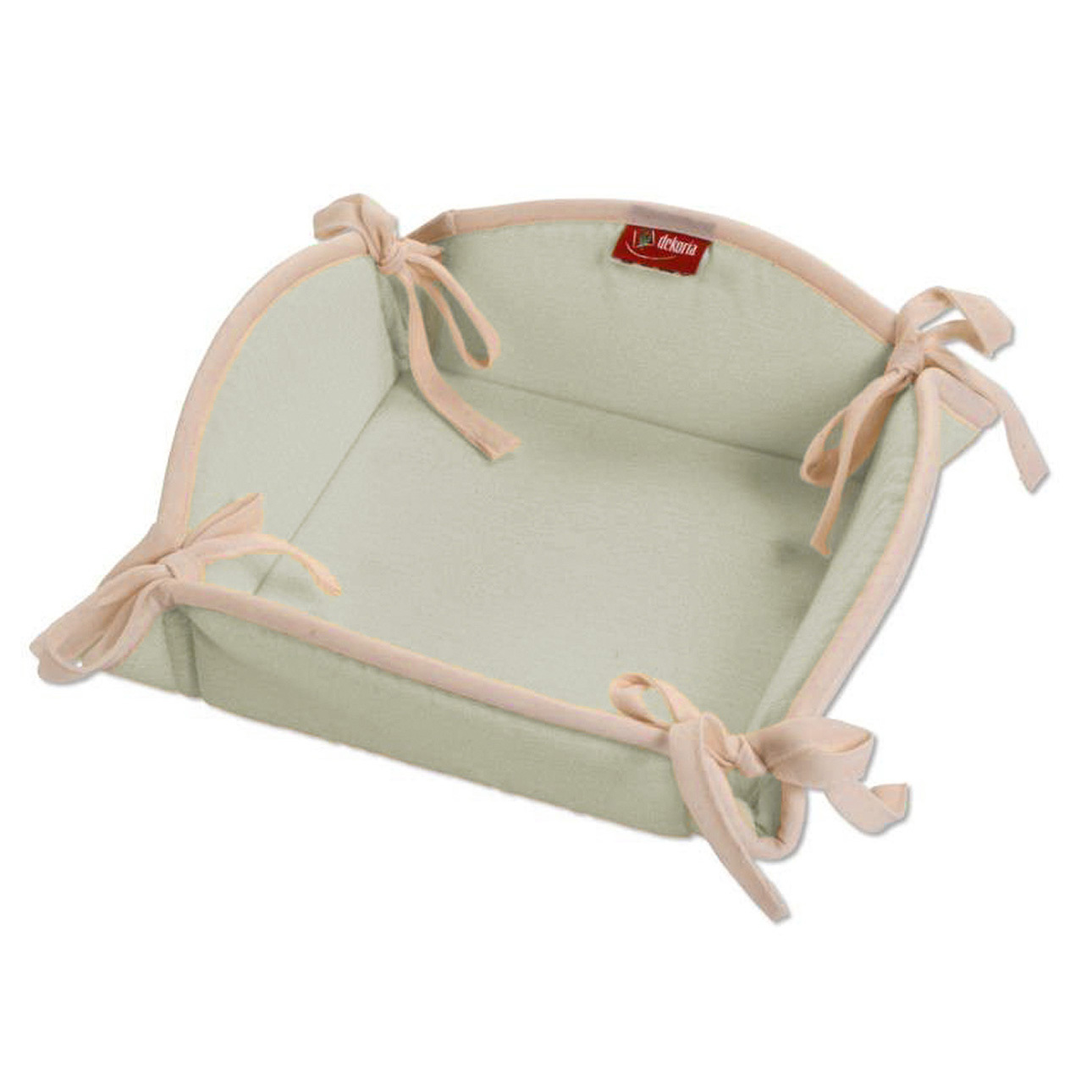 Štvorcový košík s mašľami zakončený lemovaním, farebne zladený s vybranou látkou, je tým pravým doplnkom pre krásne zladené stolovanie.