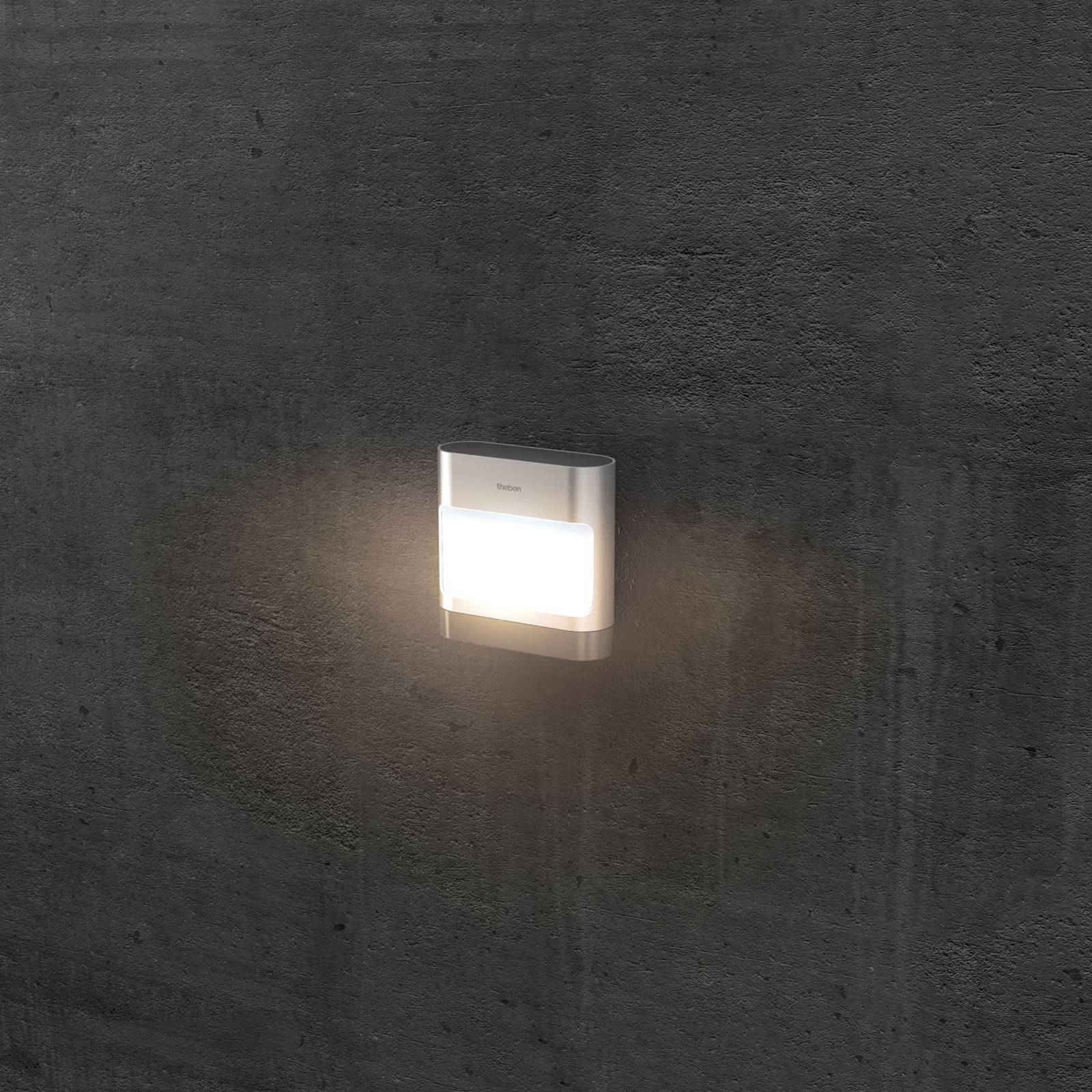 Vonkajšie nástenné LED svetlo TheLeda D SL AL s najmodernejším dizajnom – sálavé čelné Nástenné LED svetlo theLeda D SL AL zaujme kvalitným krytom z extrudovaného hliníkového profilu s veľmi estetickým vzhľadom. Svetlo je emitované spredu ako súčasť reflektora. Nástenné svietidlo, ktoré z. B. možno ideálne použiť na osvetlenie vchodu do domu, jednoducho sa namontuje pomocou zásuvnej základne. Okrem ovládania pomocou konvenčného spínača svetiel je možné aj sieťové prepojenie pomocou rádia. Vysoký svetelný tok príjemne teplých bielych LED s dlhou životnosťou je to, čo robí tento dekoratívny svetelný zdroj kombinovateľný s mnohými štýlmi fasád. – Teplota okolia: – 25 ° C až + 45 ° C – Dosah rádia: 100 m na otvorenom priestranstve – Montážna výška: 1,8 m až 2,2 m – Pohotovostný výkon: ~ 0,5 W (s bezdrôtovou sieťou)