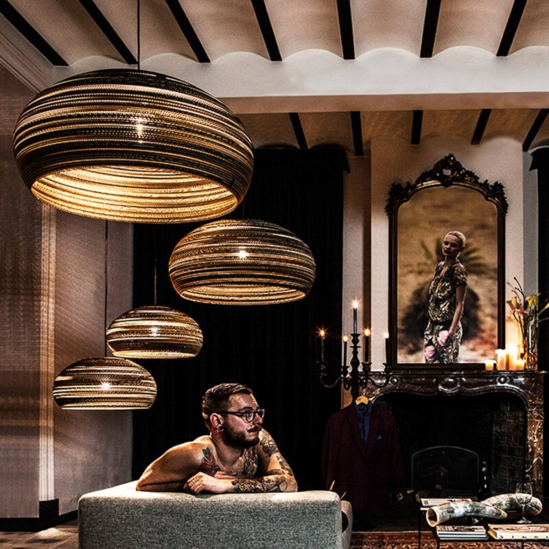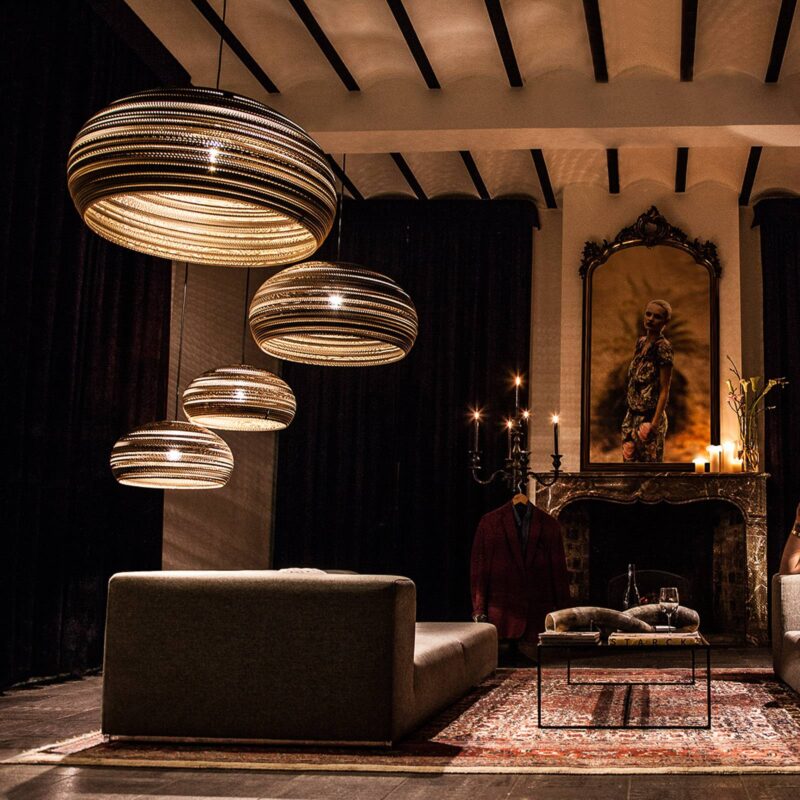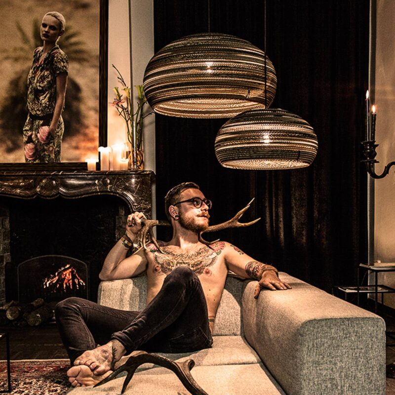 Dizajnové závesné svietidlo Dandy 440 s tienidlom z kartónu Think Paper je holandský výrobca dizajnového osvetlenia, ktorý vyrába udržateľné svietidlá, ktoré sa vyznačujú vlastným charakterom. Patrí k nim aj závesné svietidlo Dandy 440, ktorého tienidlo je vyrobené zo samonosných kartónových pásov. Všetky materiály použité na výrobu svietidla sú vyrobené udržateľným spôsobom a lepidlo použité na lepenie kartónových pásikov je 100 % biologicky odbúrateľné. Cibuľové tienidlo závesného svietidla Dandy 440 poteší pri zapnutí aj vypnutí, pretože rôzne farby kartónových pásikov s rôznou hrúbkou a zvlnením vytvárajú nielen krásne farebné odtiene, ale aj jemné otvory, cez ktoré preniká svetlo a účinne dotvára scénu pre tienidlo svietidla. Väčšina svetla však vyžaruje priamo cez široký otvor tienidla. Poznámka: Svietidlo sa vyrába na objednávku; dodacia lehota je do šiestich týždňov.