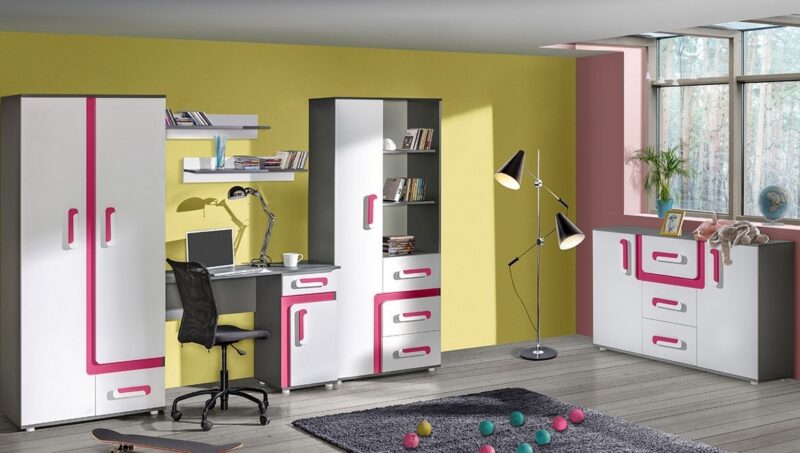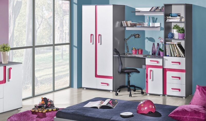Pracový stôl TITO A9 patrí do zaujímavej rady nábytku TITO, ktorá sa vyznačuje nápaditým dizajnom s výraznými úchytkami. Stolík je vyrobený z kvalitnej LTD dosky. Korpus nábytku je vo farebnom prevedení antracit. Dvierka a úchyty sú v kombinácii biela matná/ružová.Stolík má priestrannú pracovnú plochu až 180 x 50 cm a praktický úložný priestor so zásuvkou.Rozmery (v/š/h): 80 x 120 x 50 cm. Dodávame v demonteSektorový nábytok TITO vám ponúka na výber mnoho samostatných skriniek, z ktorých si môžete vyskladať jedinečnú detskú, či študentskú izbu.