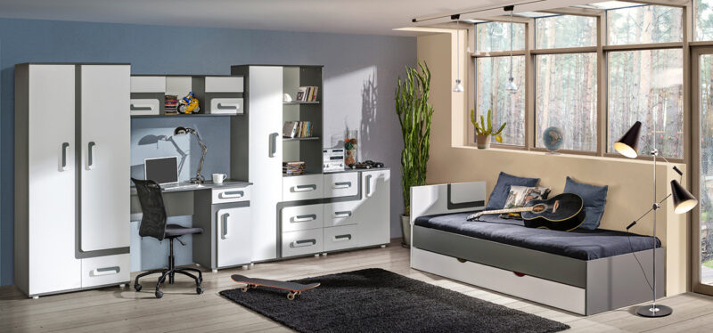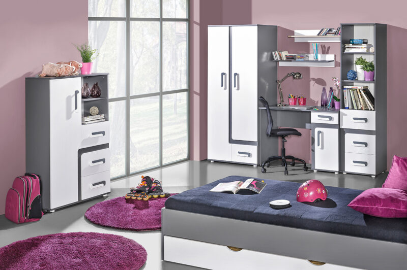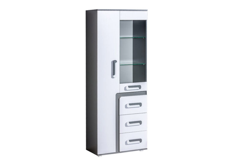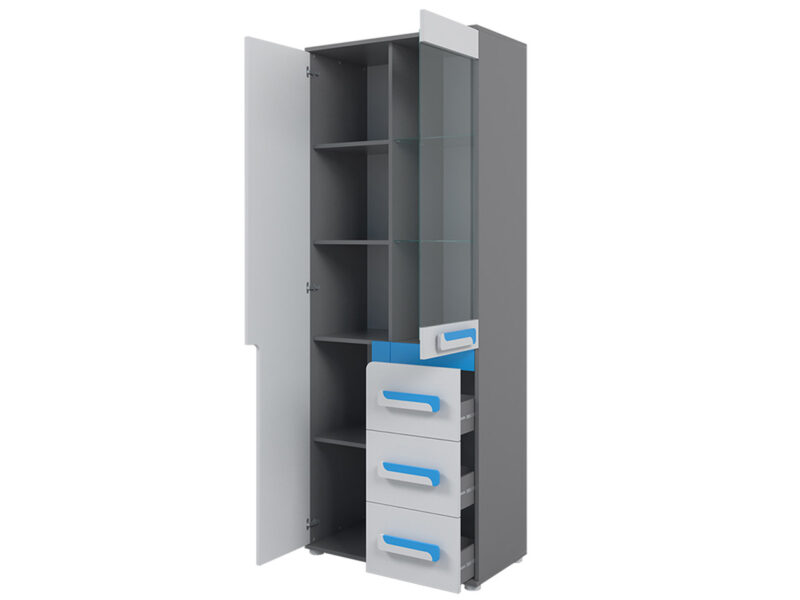 Vysoká skrinka TITO 15 patrí do zaujímavej rady nábytku TITO, ktorá sa vyznačuje nápaditým dizajnom s výraznými úchytkami. Stolík je vyrobený z kvalitnej LTD dosky. Korpus nábytku je vyrobený vo farebnom prevedení antracit. Dvierka a úchyty sú v kombinácii farieb biela matná/antracit.Skrinka je členená a prepojená so sklenenou plochou. Ľavá strana, s plnými dvierkami, ponúka poličkový odkladací priestor. Pravá strana má v hornej časti presklenné dvierka s 2 sklenenými poličkami a v spodnej časti praktické šuplíky.Rozmery (v/š/h): 192 x 75 x 40 cm. Dodávame v demonte.Sektorový nábytok TITO vám ponúka na výber mnoho samostatných skriniek, z ktorých si môžete vyskladať jedinečnú detskú, či študentskú izbu.