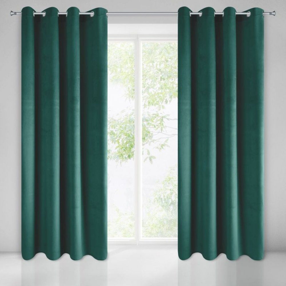 Domovská stránka » Katalóg » Tmavo zelený zatemňujúci záves do obývačky na kruhy 140 x 250 cm