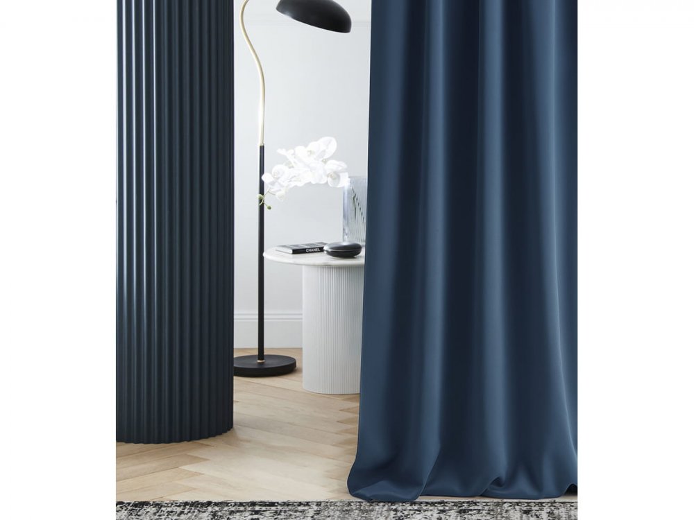 Tmavomodrý zatemňujúci záves na kruhy 140 x 250 cm