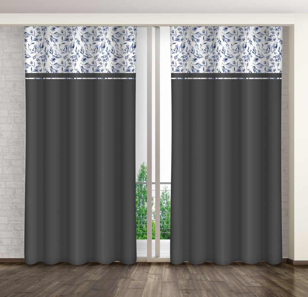 Tmavosivý dekoračný záves s potlačou modrých poľných kvetov Šírka: 160 cm | Dĺžka: 250 cm