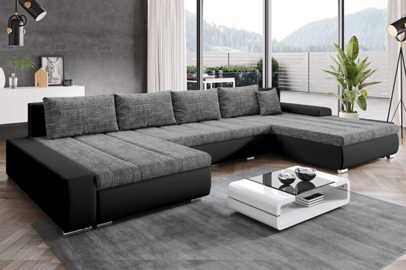 Ak hľadáte výnimočnú sedačku na zariadenie štýlovej obývačky, určite Vás zaujme účková sedačka TOBIAS. Je navrhnutá v módnych trendových líniách a poskytne veľkú plochu na oddych či leňošenie. Aj vo veľkom priestore vynikne a stane sa dominantným prvkom celého interiéru. Sedačka ponúka módny trend nízkch opierok chrbta s vankúšmi. Lesklé nožičky a kombinácia materiálu zvýrazňuje jej celkový vzhľad.Sedacia časť je vyrobená v kombinácii vlnovcovej pružiny a PUR peny typu T30. Je čalúnená kombináciou eko-kože Madryt (spodná časť) a látky Berlin. Nohy sedačky sú kovové-pochrómované, ich výška je 5 cm.Sedačka ponúka možnosť rozkladu, ktorý využíva mechanizmus DELFIN. Vďaka nemu si jednoduchým spôsobom rýchlo vytvoríte spaciu plochu 147 x 376 cm, vhodnú na príležitostné spanie. Súčasťou je aj praktický úložný priestor, ktorý oceníte v každej domácnosti.Farebné prevedenie: Berlin 01/Madryt 1100. Prevedenie rohu je pravé. Ponúkame aj sedačku TOBIAS v ľavom prevedení rohu.Rozmery (š/v/h): 400 x 85 x 180/210 cm. Hĺbka sedu 62 cm, výška sedu 42 cm, výška bez podušiek 80 cm.V našej ponuke nájdete viacero farebných prevedení tejto dominantnej a modernej sedačky.
